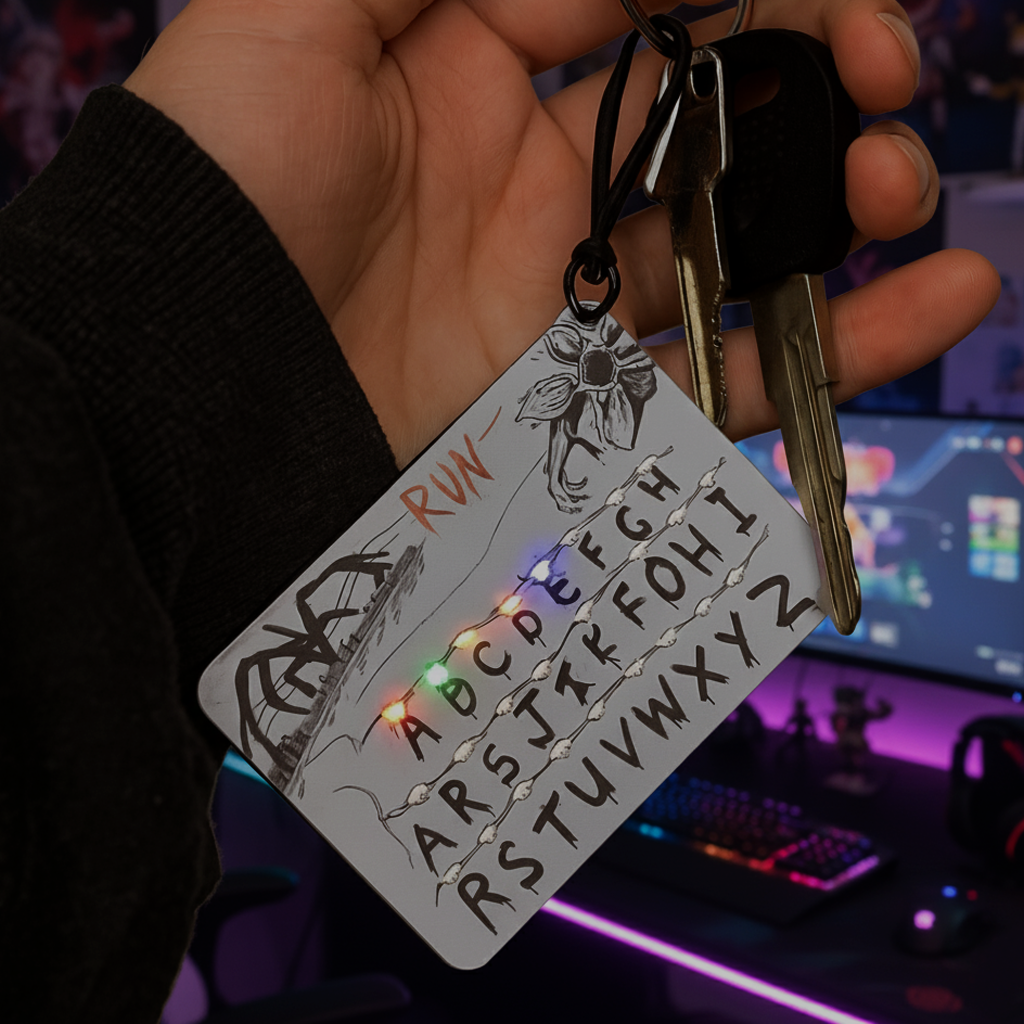 Take a piece of the mystery with you — clip it to your keys, backpack, car mirror, or jacket. Compact, lightweight, and made to glow with nostalgia, it’s an everyday charm for those who feel the connection.